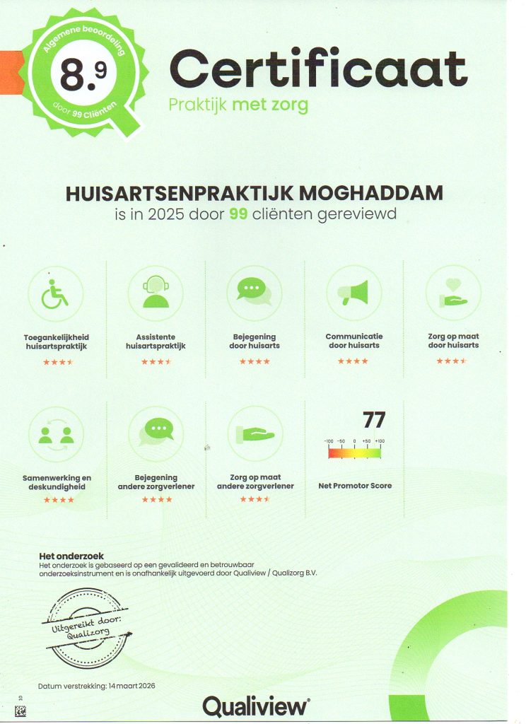 Wij zijn benieuwd naar uw ervaringen met onze huisartspraktijk en onze medewerkers. Daarom neemt onze praktijk deel aan een onderzoek dat uw ervaringen meet. Dit onderzoek wordt uitgevoerd door een onafhankelijk bureau genaamd Qualizorg B.V.. De online monitor die Qualizorg B.V. hanteert, heet Qualiview.